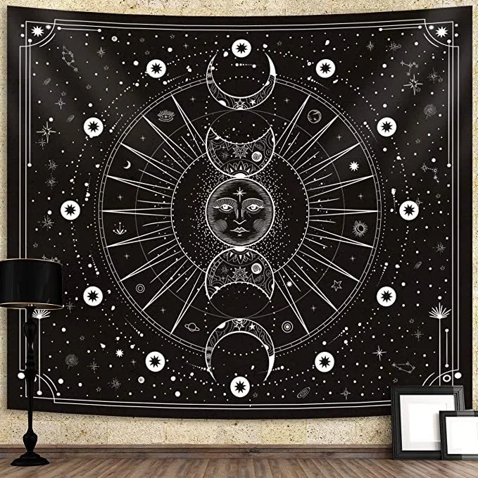 Add a touch of whimsy to your space with this moon-phase tapestry. The tapestry features a beautiful and intricate design that showcases the different phases of the moon. It's made of high-quality polyester and is easy to install.